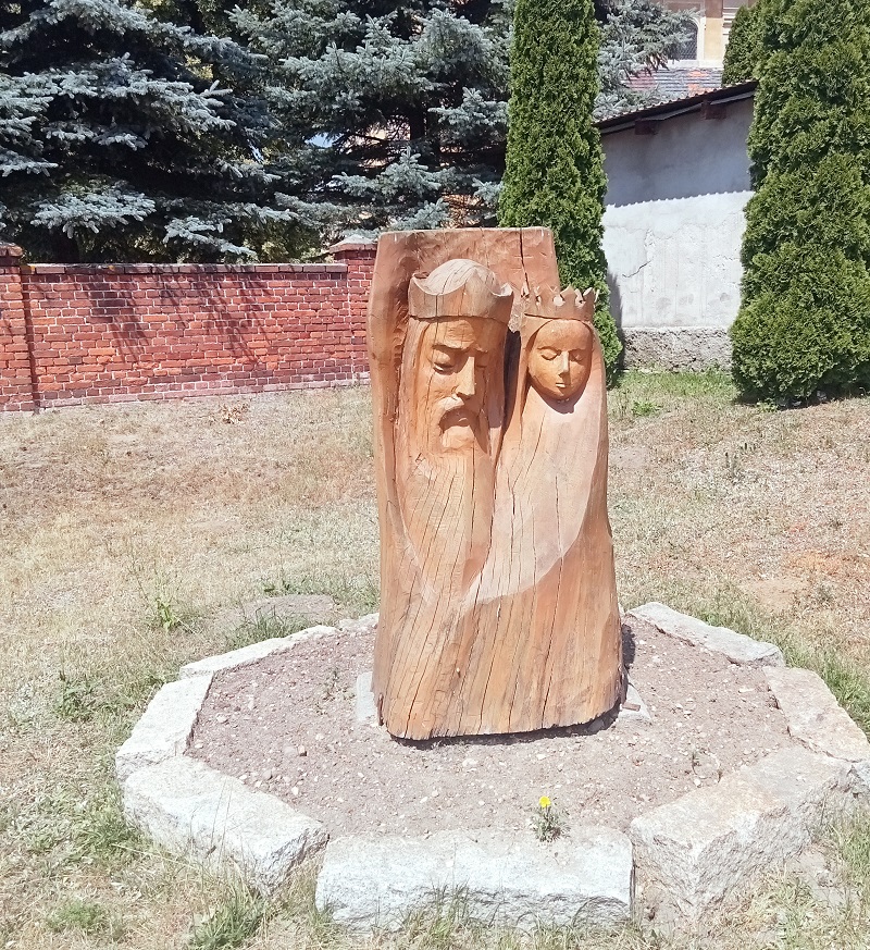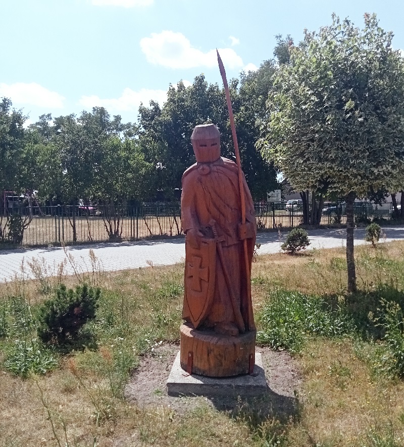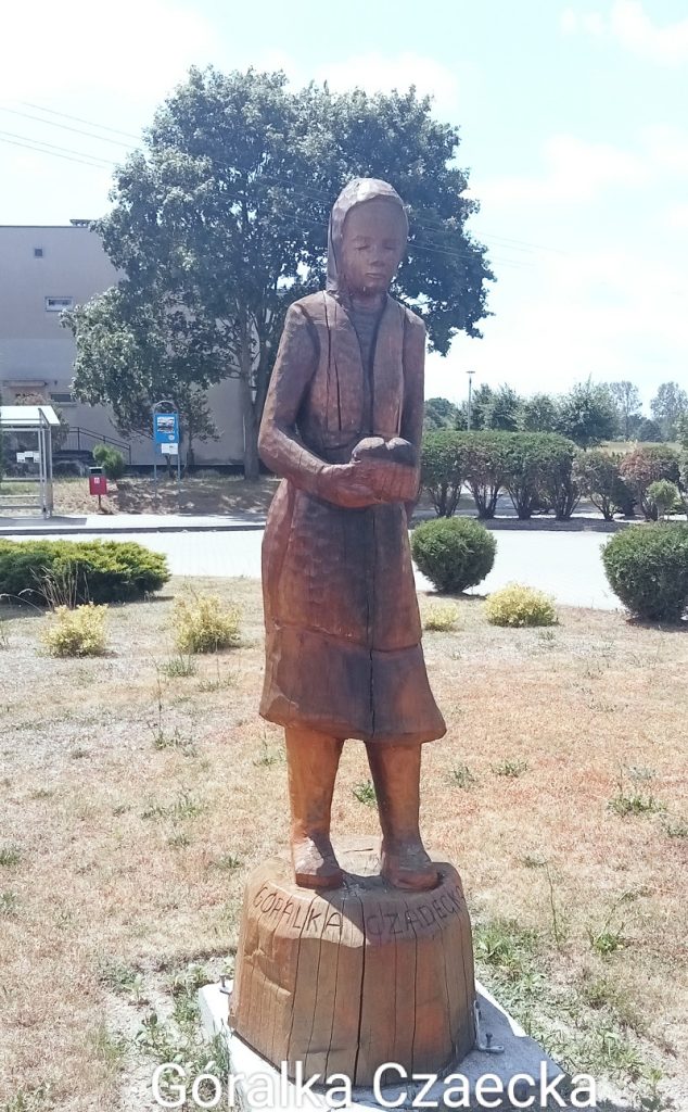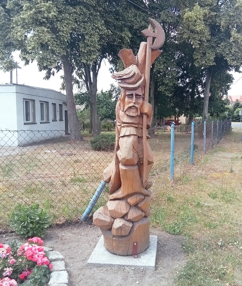 Jadę przez gminną wieś Brzeźnica. Uwagę przyciągają umieszczone przy drodze drewniane rzeźby